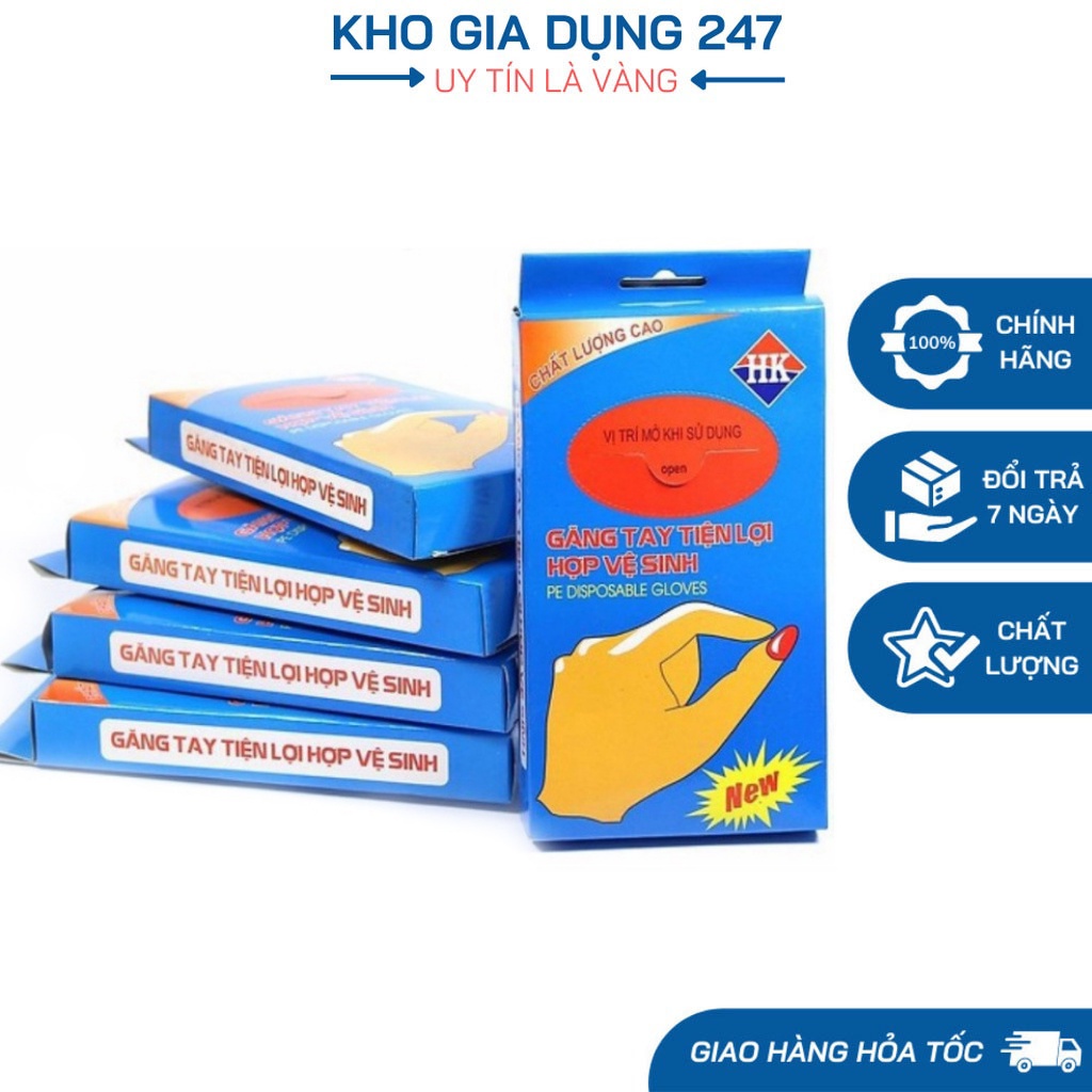 Găng tay nilong là 1 loại gang tay được nhiều người ưa chuộng và sử dụng nhiều vì những lợi ích mà nó mang lại vô cùng nhiều, Có thể dùng găng tay làm bánh, chế biến thức ăn, gang tay làm xôi, dùng để bảo vệ tay khỏi những chất dơ bẩn, nhuộm tóc, sơn của nhà, lau chùi máy móc,,,,,đồ dùng ,mà nhà nào cũng nên sẵm 1 hộp găng tay nilon dùng 1 lần này về để dùng dần ạ, siêu tiện luôn ấy, làm những món gỏi , trộn thì sạch sẽ hơn hắn ạ