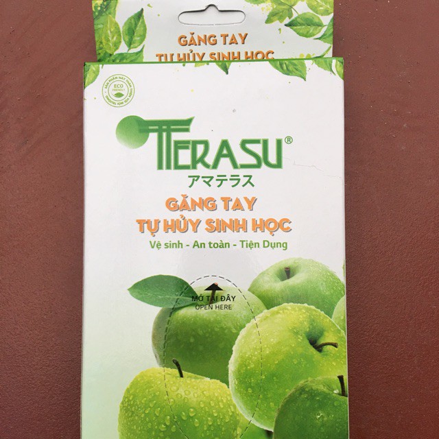 🔸 Được Biết đến là sản phẩm đột phá với ưu điểm vượt trội không độc hại, an toàn sức khỏe con người và môi trường găng tay tự hủy sinh học Terasu của công ty nhựa OPEC có khả năng tự phân hủy, giúp đảm bảo vệ sinh an toàn thực phẩm trong chế biến mặt khác bảo vệ đôi tay khỏi bị tiếp xúc với một số hóa chất như thuốc nhuộm tóc, chất tẩy rửa ....