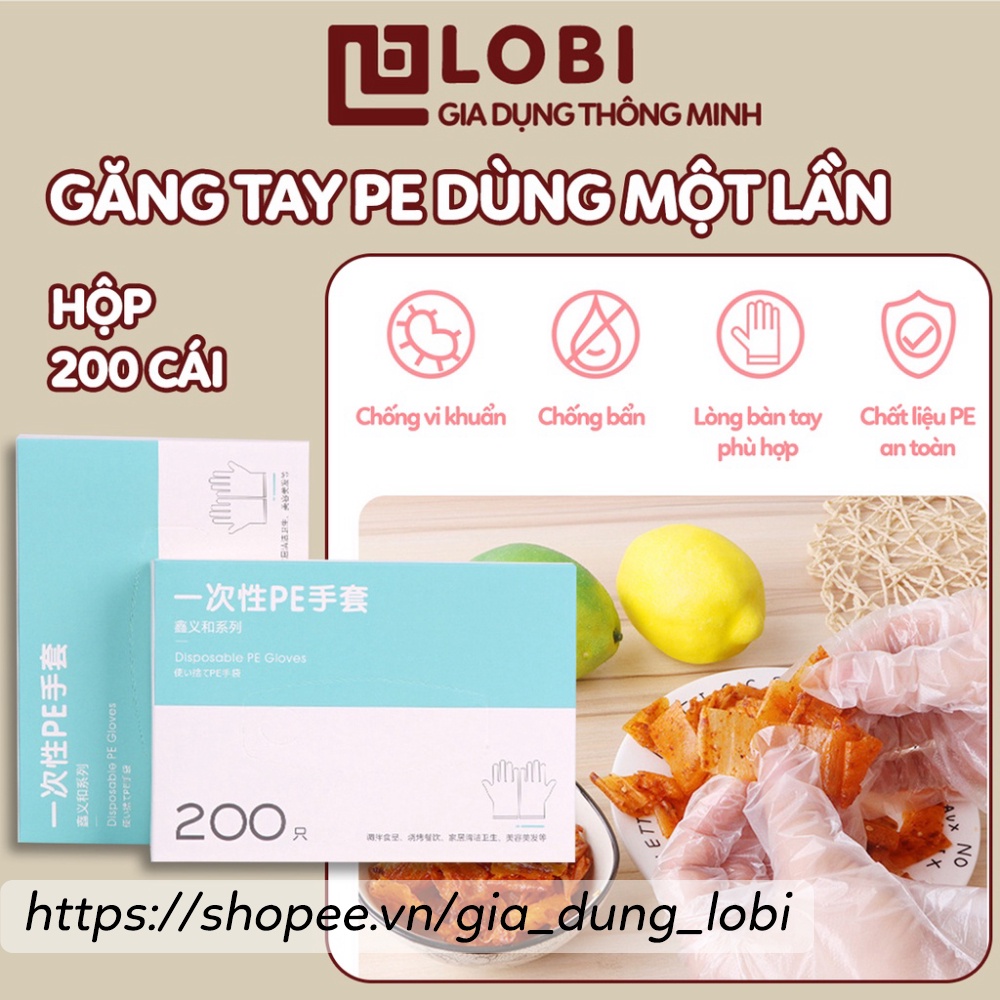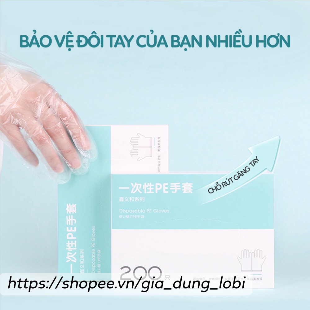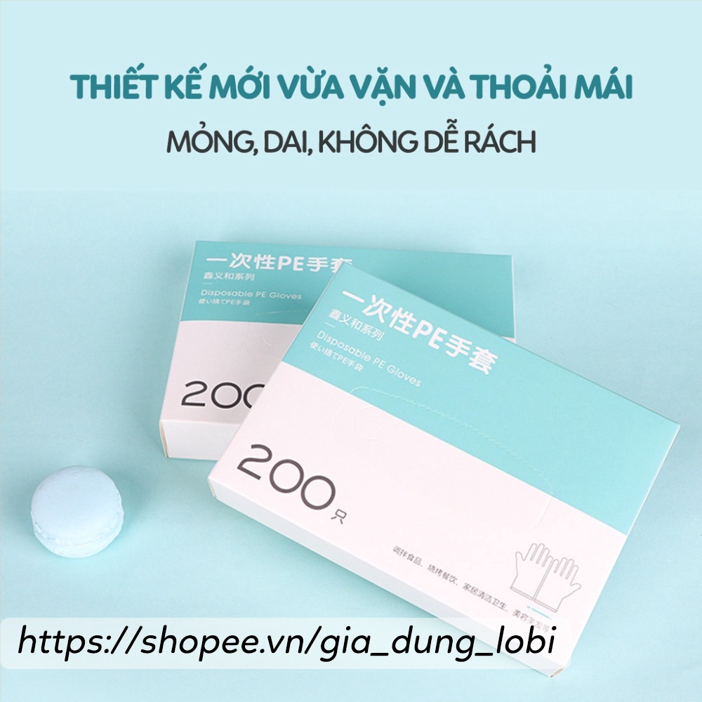 Găng tay PE siêu dai làm bếp nấu ăn vệ sinh hộp 200 cái găng tay cao su rửa bát dùng một lần