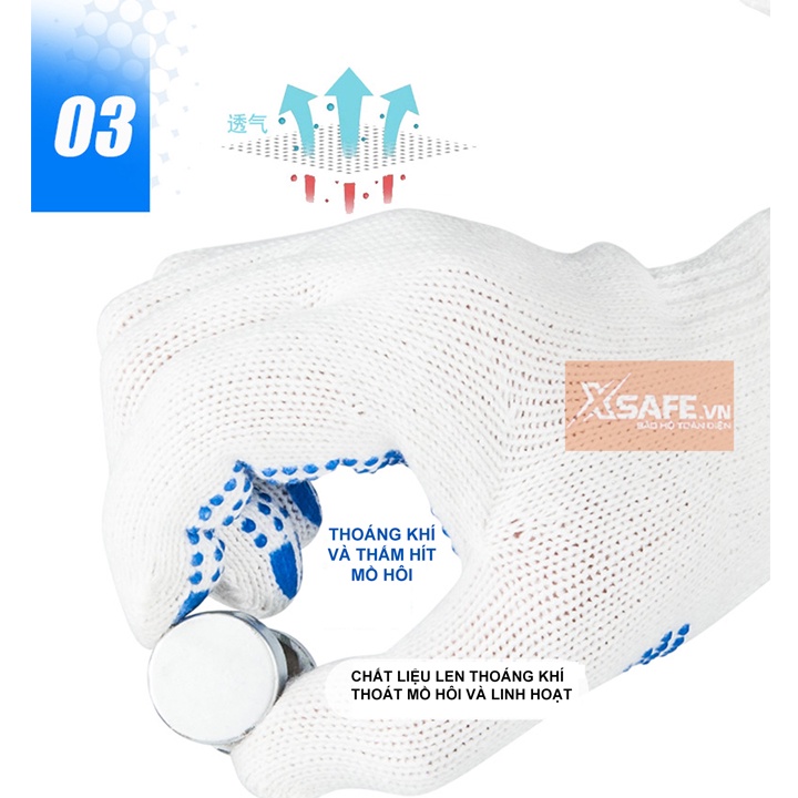 - Găng tay bảo hộ sợi kim 7 chấm hạt nhựa lòng bàn tay