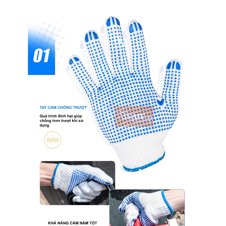 Găng tay phủ hạt nhựa Găng tay bảo hộ lao động chống trầy xước, tăng độ bám, chống trơn trượt, thao tác linh hoạt