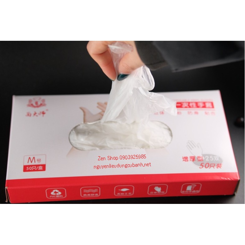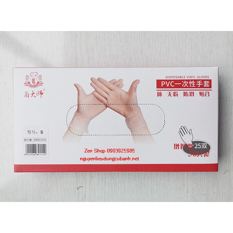 Găng tay PVC trộn thực phẩm, làm bánh 50 chiếc (25 đôi)Kích thước hộp: 23.5 * 12 *3cm