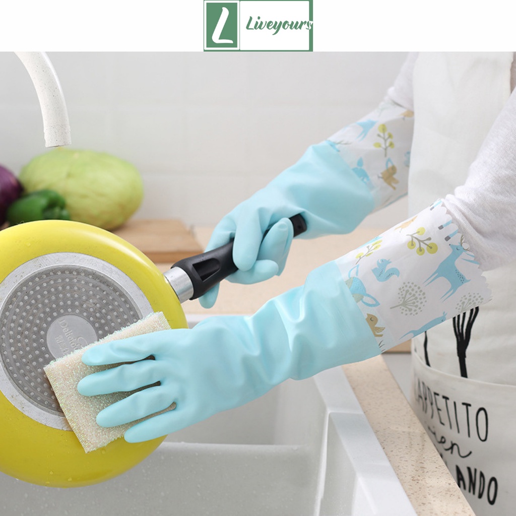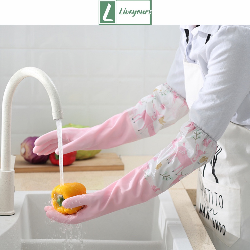 Giới thiệu Găng Tay Rửa Bát Chén Vệ Sinh Nhà Bếp Toilet Có Thun Lót Nỉ Siêu Ấm Hàng Cao Cấp - Liveyours
