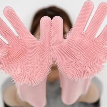 Đôi găng tay cao su có thể thay thế hoàn toàn các miếng cọ rửa thông thường. Giúp cho việc vệ sinh được nhanh chóng và sạch sẽ hơn.