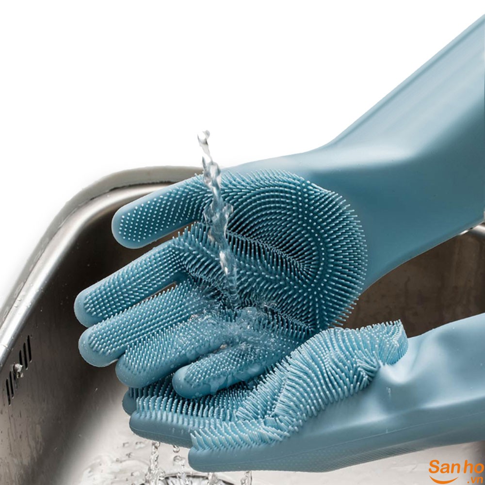 Găng tay với những lớp gai ngay lòng bàn tay giúp chị em dễ dàng cọ rửa sạch bát đĩa, hoa quả, lau chùi nhà cửa, bếp, nhà vệ sinh... mà không làm hại da tay...Chất liệu: 100% silicon. Chất liệu thân thiện với mô trường, không hại da tay, không thấm nước và dầu. Mềm mại, dẻo dai và rất bền