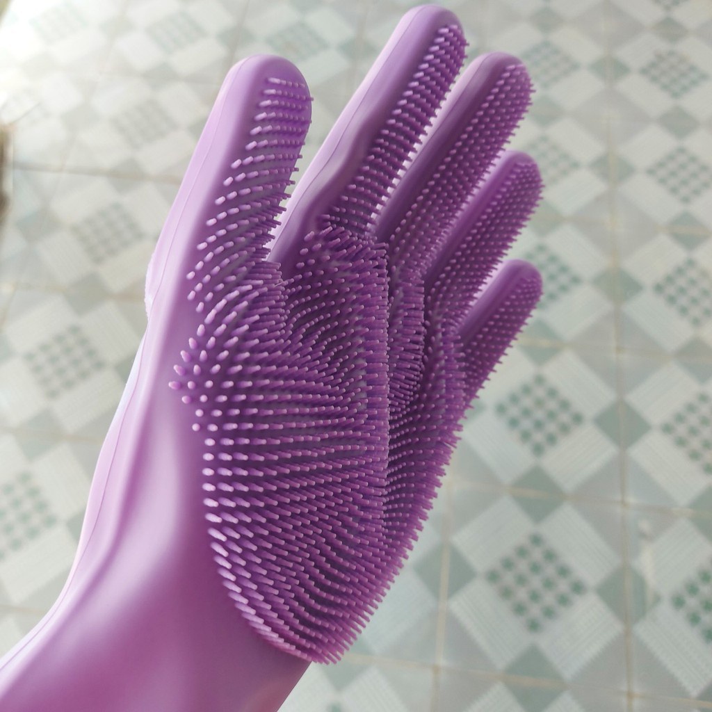 Găng Tay Rửa Bát Silicon Tạo Bọt Kiêm Miếng Rửa Bát