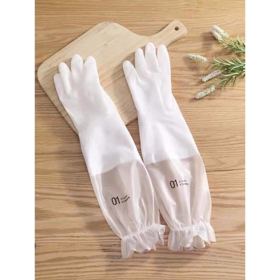 Găng tay cao su lót nỉ rửa bát thiết kế hai lớp, lớp ngoài bằng chất liệu cao su mềm, êm và chắc chắn, lớp trong lót nỉ ấm áp đi rất chặt và thật tay.Đặc biệt chiều dài qua khuỷu tay rất tiện khi sử dụng và không lọ bị ướt tay áo hay nước bắn vào trong.