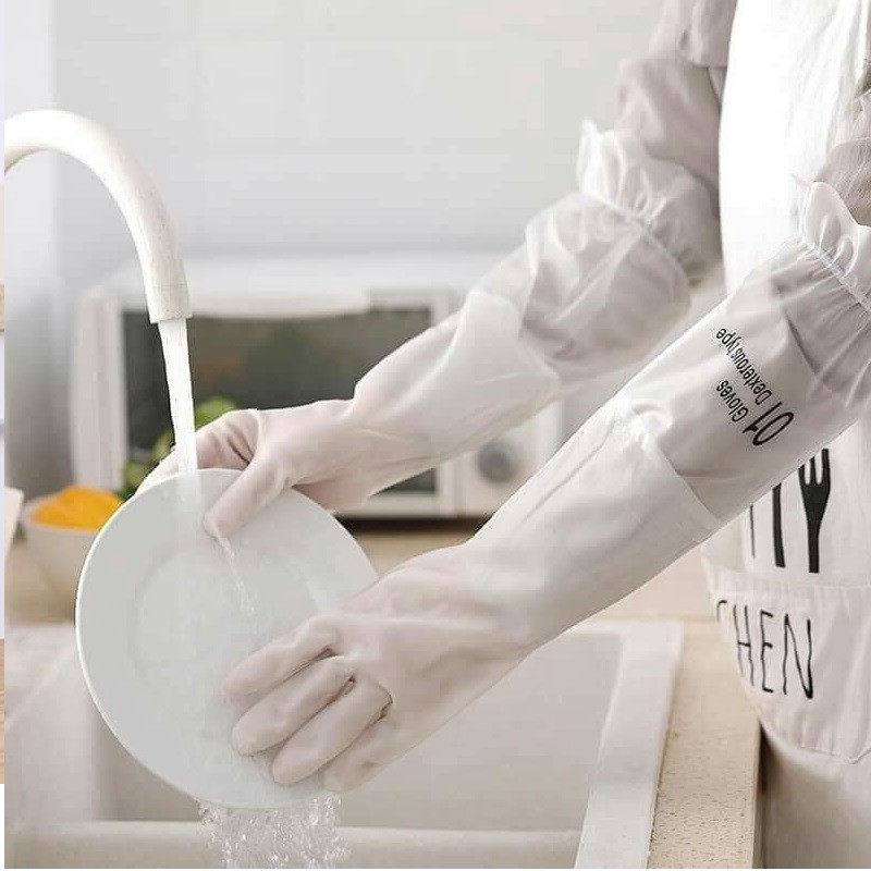 Găng tay rửa chén bát lót nỉ siêu dai - Cổ cao - Có chun chống tụt - Găng tay rửa chén dài--------------------------------------------------