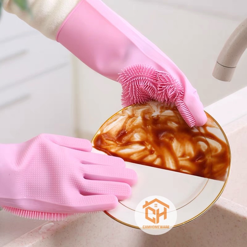 Nhà cửa & Đời sống > Dụng cụ chăm sóc nhà cửa > Miếng bọt biển, miếng chà vệ sinh || Găng Tay Rửa Chén Bát Silicon Vệ Sinh Nhà Cửa Đa Năng Cam HomewareCòn hàng