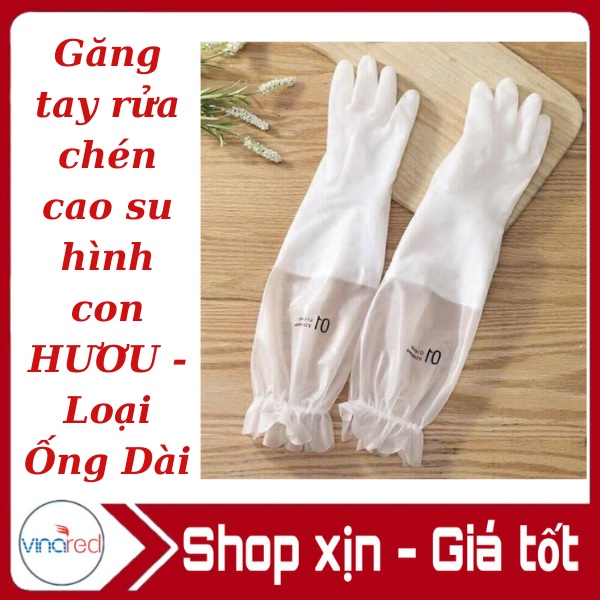 Găng tay rửa chén cao su hình con HƯƠU - Loại Ống Dài có thun chông trượt
