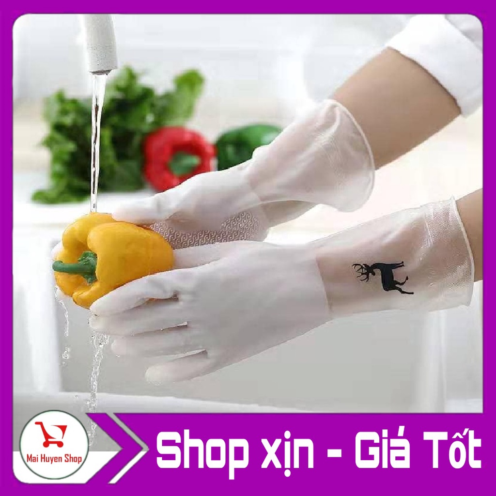 Tên sản phẩm: Bao Tay Rửa Chén Cao Su Hình Hươu Siêu Dai (Loại Ngắn)Chất liệu: Cao su