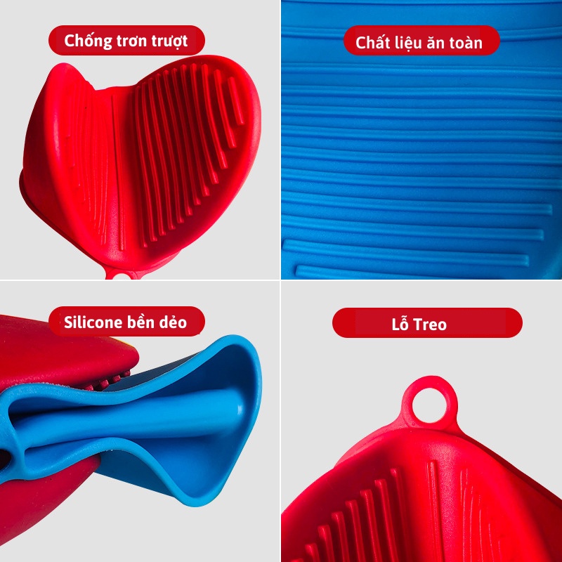 - Kẹp tay cách nhiệt silicon sản xuất bằng quy trình đạt chuẩn nhà máy chứng chỉ Mỹ nên rất bền bỉ và chất lượng.