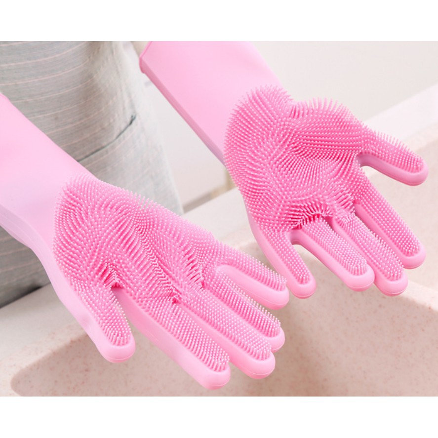 -Găng tay cao su mềm với những gai silicon trong lòng bàn tay giúp tạo bọt, rửa sạch bát đũa hơn.