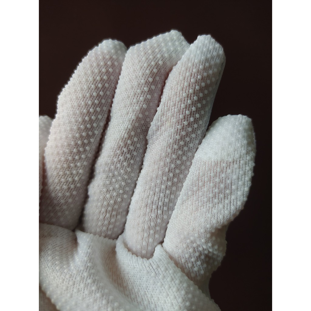 Găng tay phủ hạt nhựa chống trượt, chống tĩnh điện là một găng tay chống tĩnh điện thông thường được bổ sung các hạt chống trượt PVC, đeo găng tay nhựa để tăng ma sát cọ, do đó chúng ta không cần dùng lực quá nhiều nhưng vẫn có thể nắm chắc đối tượng.