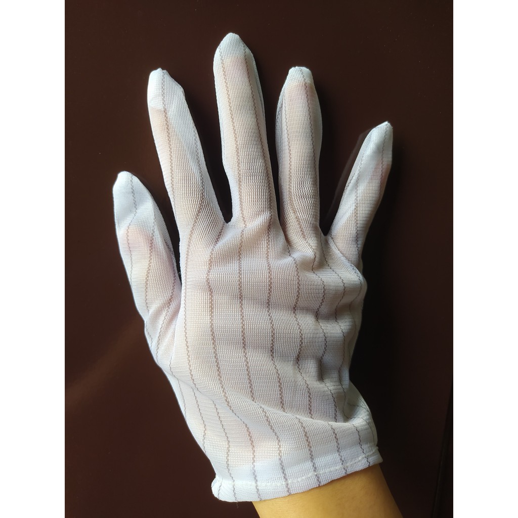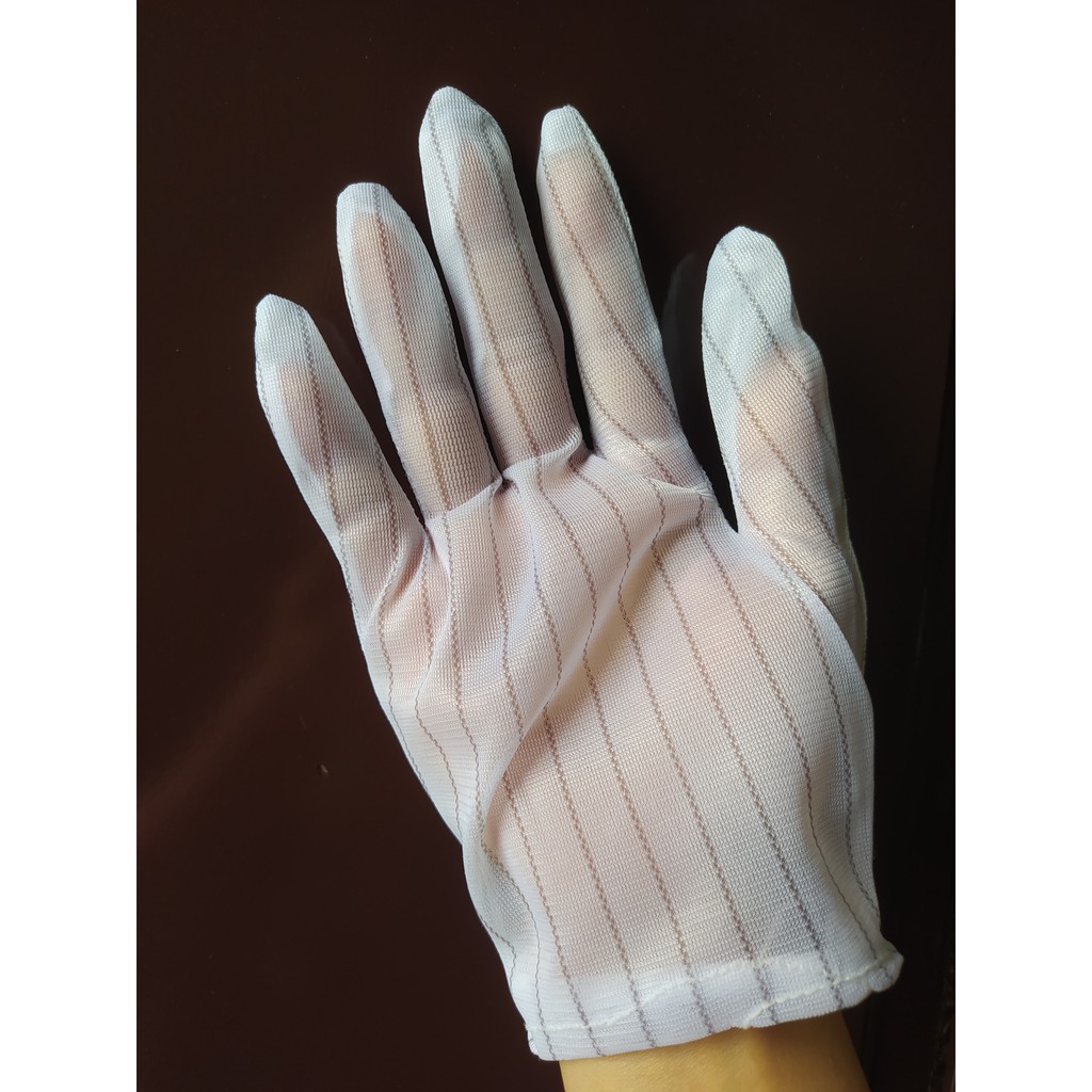 Găng tay sợi polyester sọc năm ngón chống tĩnh điện dùng cho phòng sạch, các ngành công nghiệp lắp rắp linh kiện psach