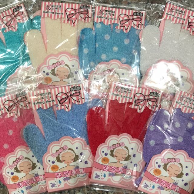Loại bỏ tất cả tế bào chết của bạn cùng găng tay tắm.Sử dụng các găng tay tắm để kích bọt sữa tắm, làm sạch sâu cơ thể.