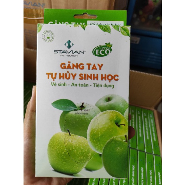 Găng tay tự hủy sinh học Green Eco StavianCông dụng: Bảo vệ, giữ vệ sinh tay....