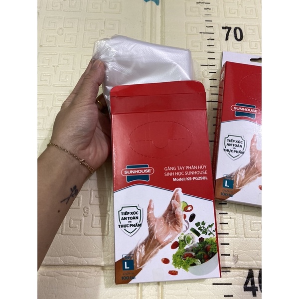 Nhà cửa & Đời sống > Dụng cụ nhà bếp > Tạp dề & gắng tay nấu nướng || Găng tay tự huỷ sinh học SUNHOUSE ,tiếp xúc an toàn với thực phẩm kt :27 x 29cm ( hộp 100 chiếc)Còn hàng