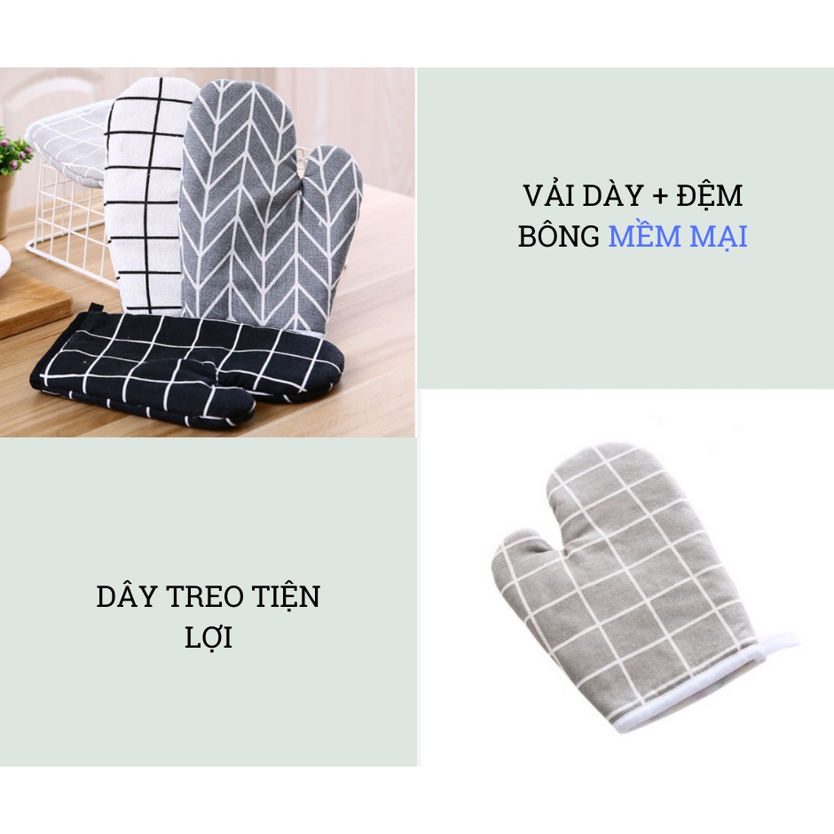 Găng Tay Vải Bưng Bê Vật Nóng - Bao Tay 2 Lớp Vải Bông Chống Nóng, Nhấc Nồi, Nướng Bánh