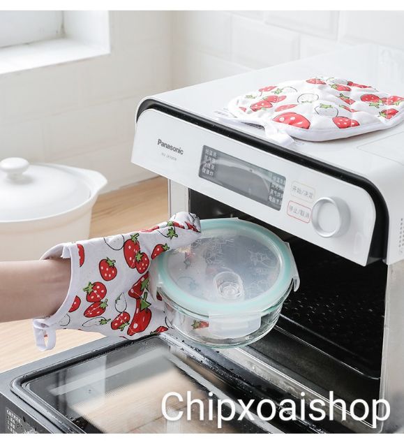 - Được làm bằng chất liệu vải dày cách nhiệt dễ dàng bảo vệ đôi tay người đeo tránh khỏi nhiệt độ nóng từ lò nướng.