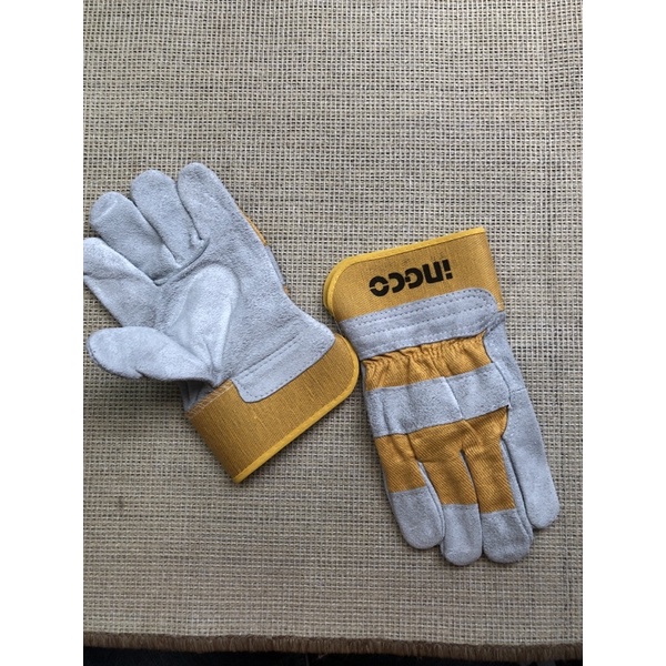 Găng tay vải da INGCO HGVC01Size: 10.5 inch ~ 25 cm, sử dụng trong vận chuyển, trong vận hành máy, làm vườn, chất liệu bằng vải da bò ở lòng bàn tay, lớp coton và cao su ở mặt trên găng tay giúp cầm nắm chắc chắc hơn