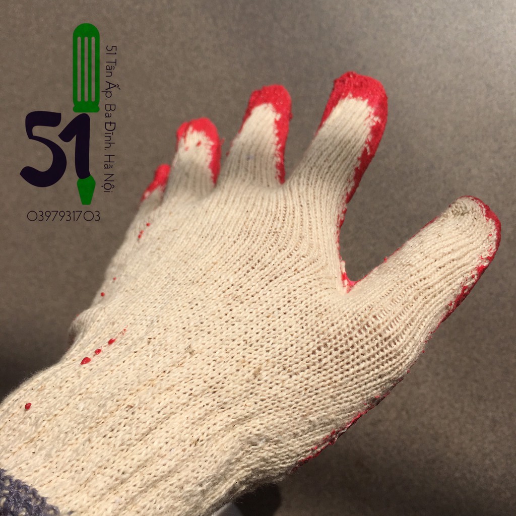 Găng tay vải phủ sơn đỏ: 5.000/đôiGăng tay vải sơn xanh: 10.000/đôi