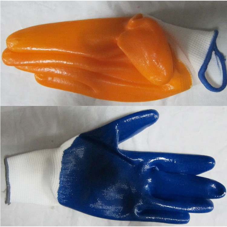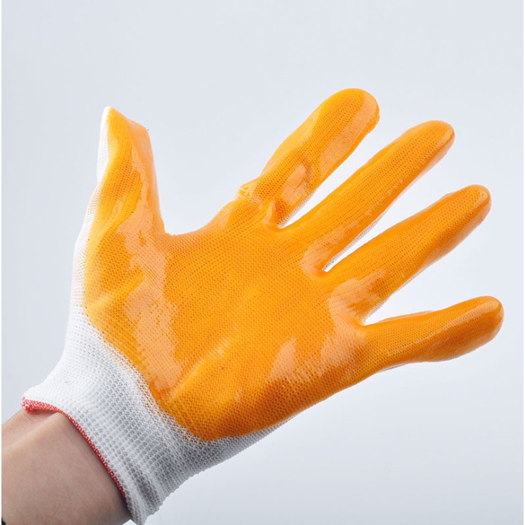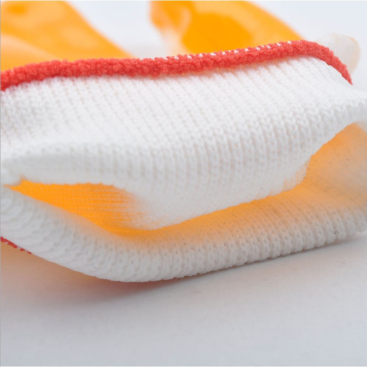 Găng tay vải nhúng cao su màu cam chống trơn trượt dùng trong các ngành cơ khí, chế tạo, thi công