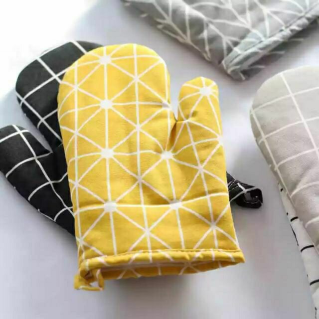 Găng tay vải thô dày dặn chịu được nhiệt cao, giúp bạn có thể nhấc nồi hoặc bát nóng từ bếp, lò vi sóng ra ngoài mà không lo bỏng tay nhaShop giao màu ngẫu nhiên