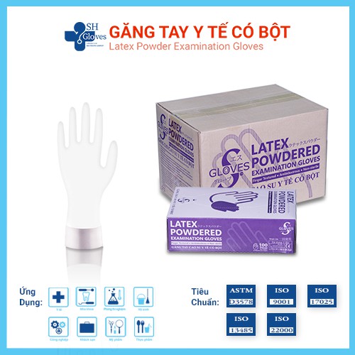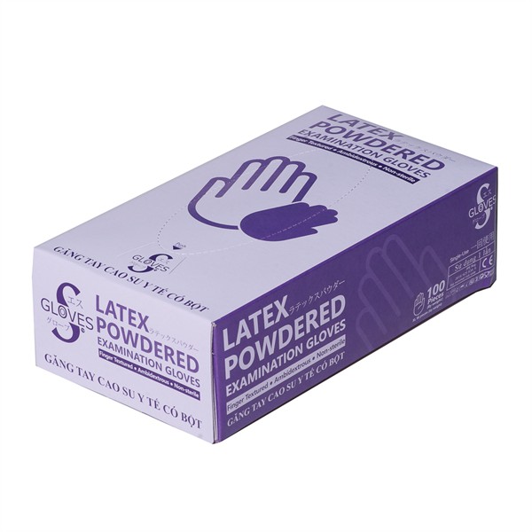 Găng tay spa có bột Latex S Gloves giúp thao tác đeo và tháo găng dễ dàng hơn, hàm lượng bột cho phép theo tiêu chuẩn của USP và FDA, độ đàn hồi vượt trội so với găng cao su khác, sản phẩm được sử dụng tại các bệnh viện, phòng khám, trung tâm spa, thẩm mỹ,…Thùng/10 hộp; (Hộp 100chiếc=50đôi)