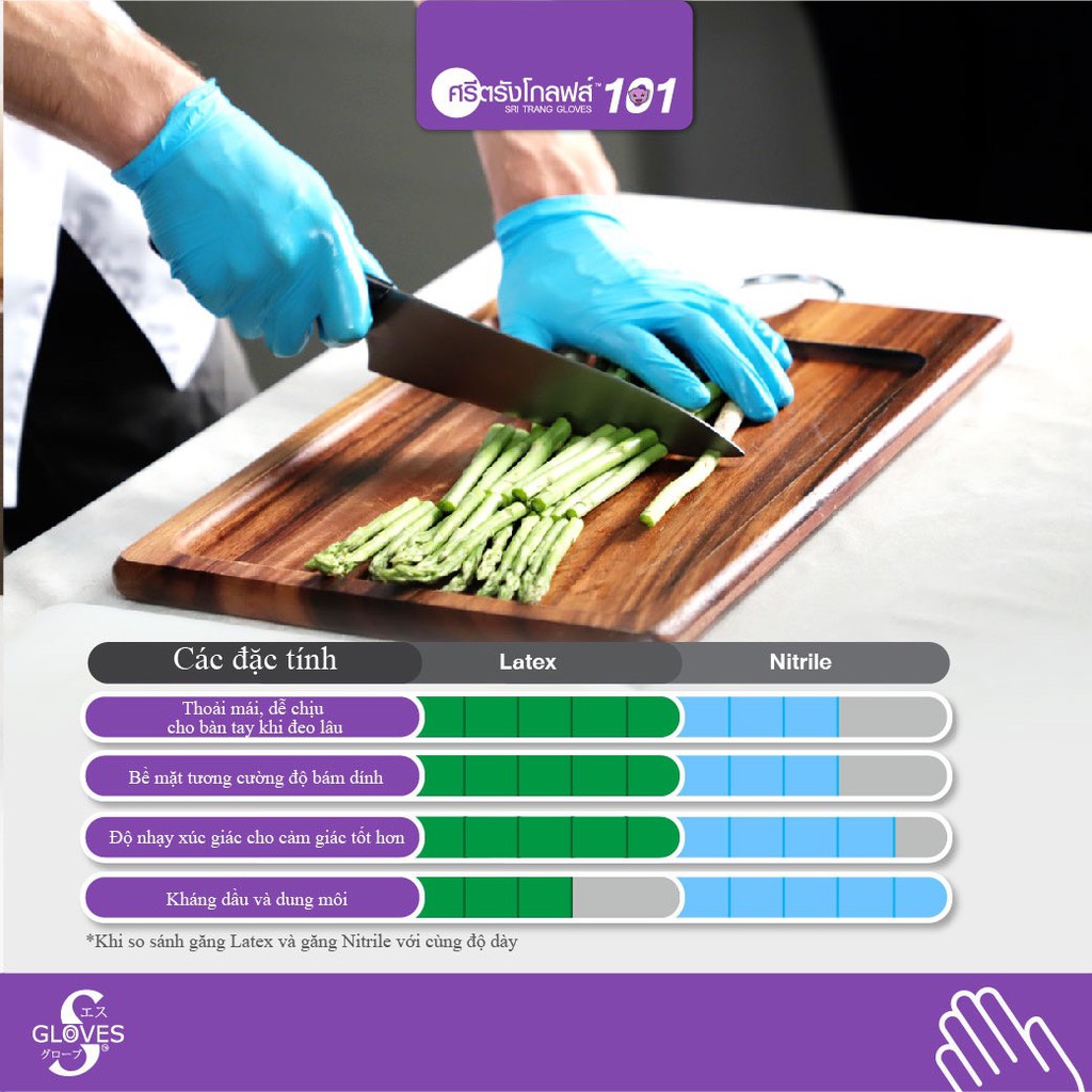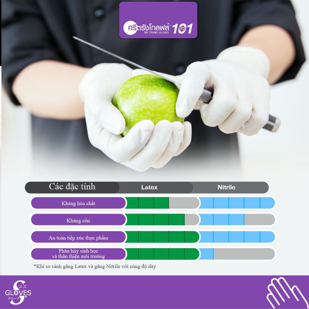 - Độ đàn hồi vượt trội so với găng cao su tổng hợp.