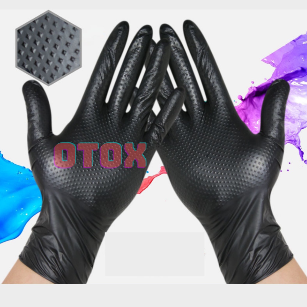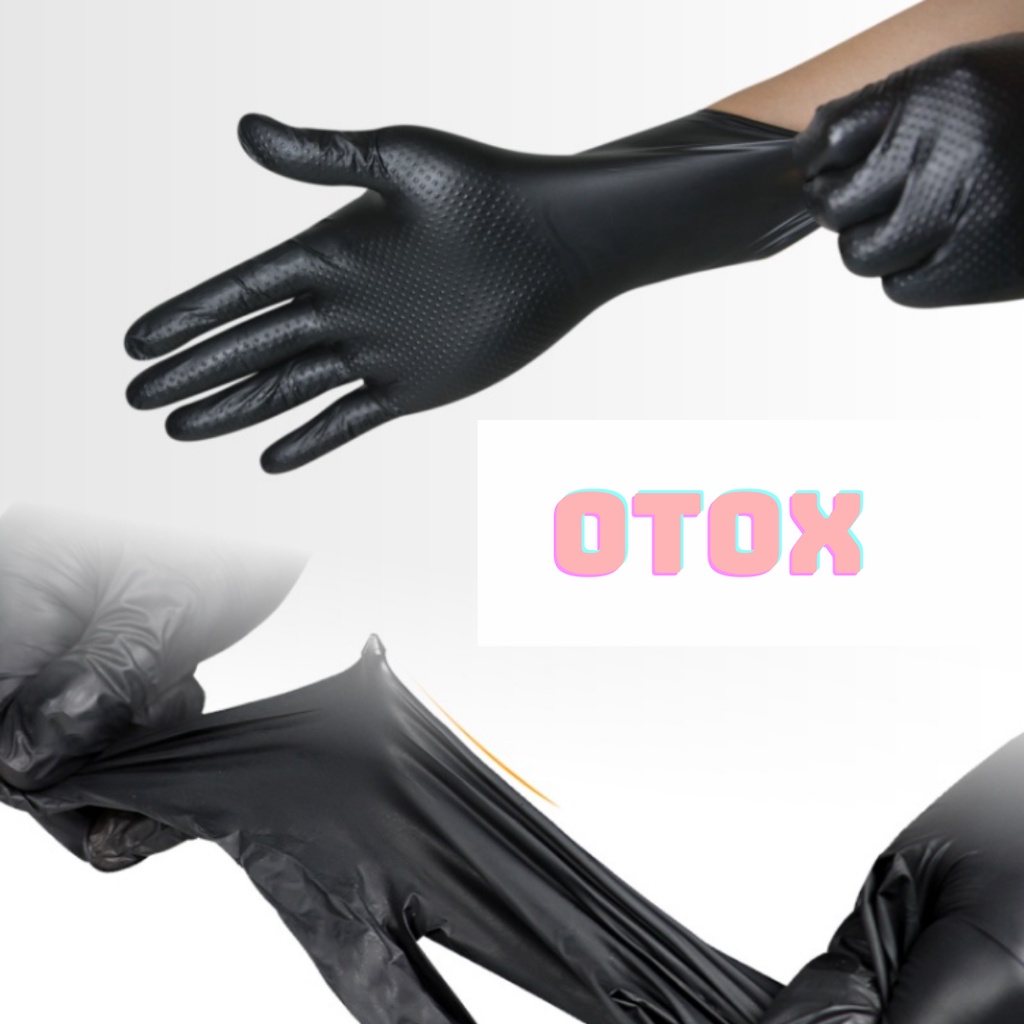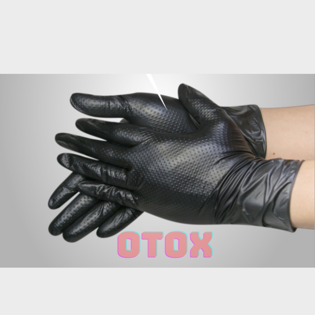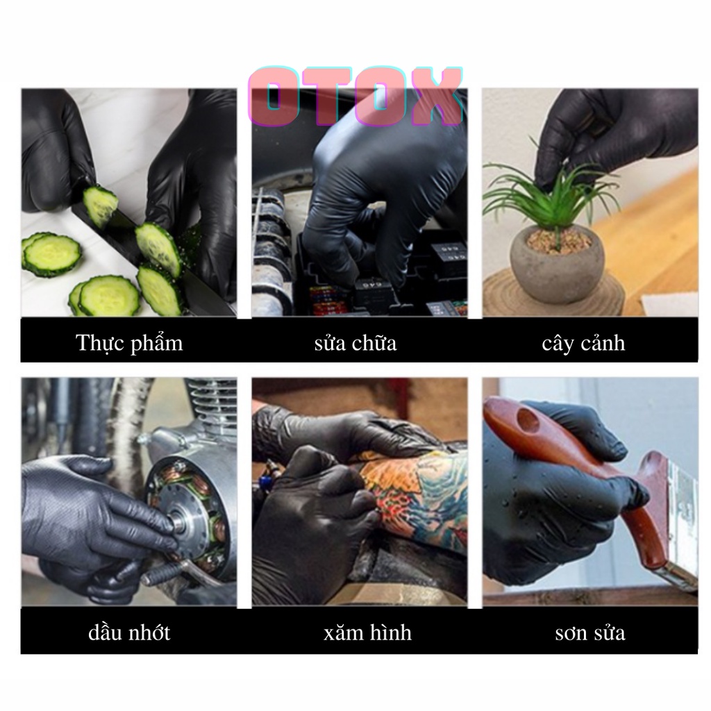 Giới thiệu Găng tay y tế Nitrile không bột hộp 50 cái màu đen siêu dày dập nổi kim cương đàn hồi cao OTOX