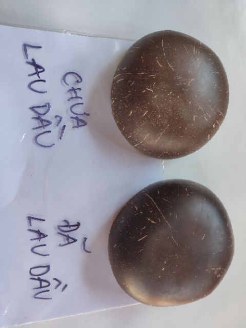 Hình thật shop tự chụp, giúp các bạn phân biệt được gáo đã lau dầu và chưa lau dầu.