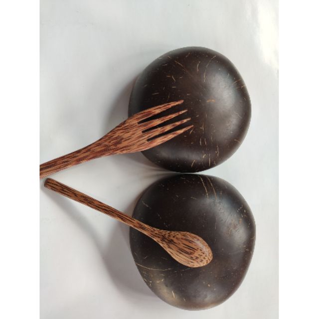 Gáo chén dừa đã lau dầu dừa | Combo gáo chén kèm muỗng | Chén gáo dừa muỗng cafe