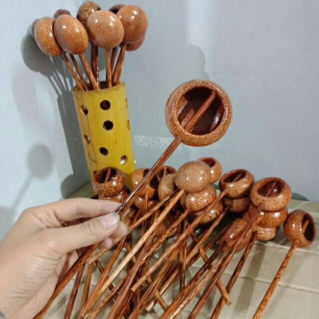 🍯Gáo múc rượu mỹ nghệ dừa là sản phẩm có từ rất lâu trên vùng đất Bến Tre chiếc gáo múc rượu mỹ nghệ dừa được làm từ gỗ dừa tự nhiên lâu năm, phải trải qua nhiều công đoạn từ cắt,gọt mài, dũa, phủ thêm lớp sơn bóng chống trầy xướt và qua quá trình phơi dưới ánh nắng tự nhiên mới tạo ra được sản phẩm bền và có chất lượng.