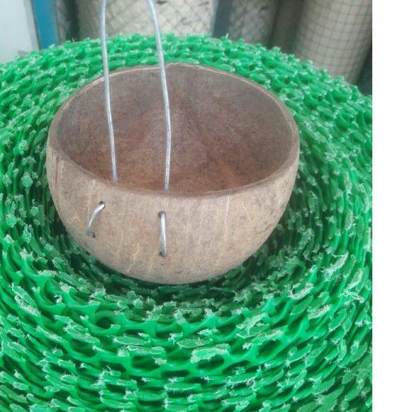 Gáo dừa trồng cây, đựng thức ăn uống cho gà , gáo dừa thô nhỏ được làm sạch xơGáo dừa có quai để thuận tiện treo móc nơi nào cũng được ạ.