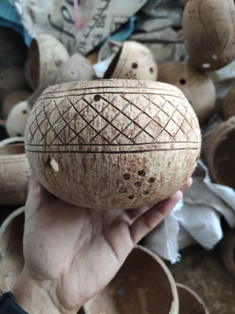 Nhà cửa & Đời sống > Dụng cụ chăm sóc nhà cửa > Chậu, xô & gáo nước || Gáo dừa trồng lan - Cắt họa tiết viền miệng khoan lỗCòn hàng