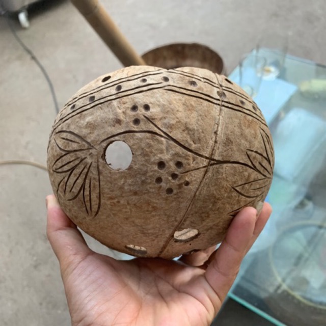 Nhà cửa & Đời sống > Làm vườn > Dụng cụ làm vườn || Gáo dừa trồng lan có hoa văn, căt viền, cắt miệngCòn hàng