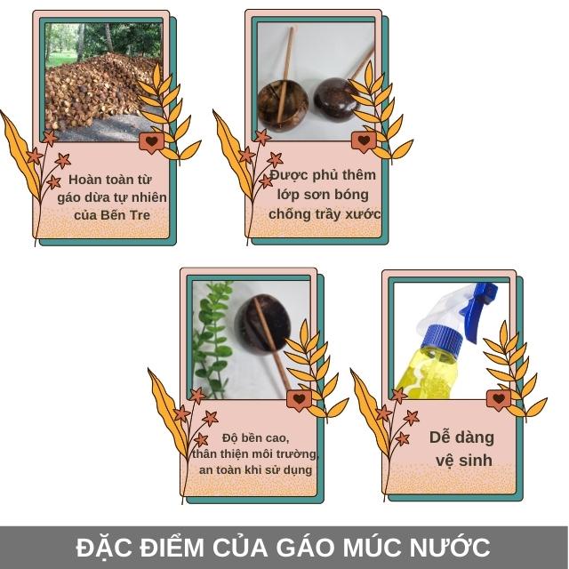 Gáo múc nước là sản phẩm của một cơ sở sản xuất thủ công mỹ nghệ bằng nguyên liệu dừa ở Bến Tre.Ưu điểm của gáo múc nước