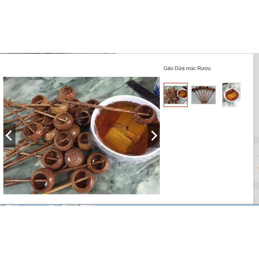 -Gáo múc rượu mỹ nghệ dừa là sản phẩm có từ rất lâu trên vùng đất Bến Tre chiếc gáo múc rượu mỹ nghệ dừa được làm từ gỗ dừa tự nhiên lâu năm, phải trải qua nhiều công đoạn từ cắt,gọt mài, dũa, phủ thêm lớp sơn bóng chống trầy xướt và qua quá trình phơi dưới ánh nắng tự nhiên mới tạo ra được sản phẩm bền và có chất lượng.-Gáo dừa múc rượu cực đẹp, được thiết kế nhỏ gọn, xinh xắn và rất tiện lợi.