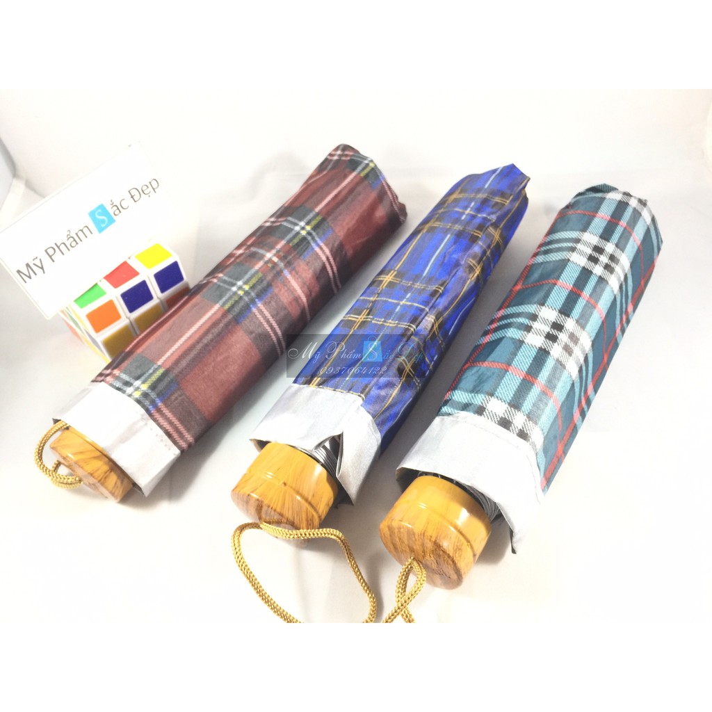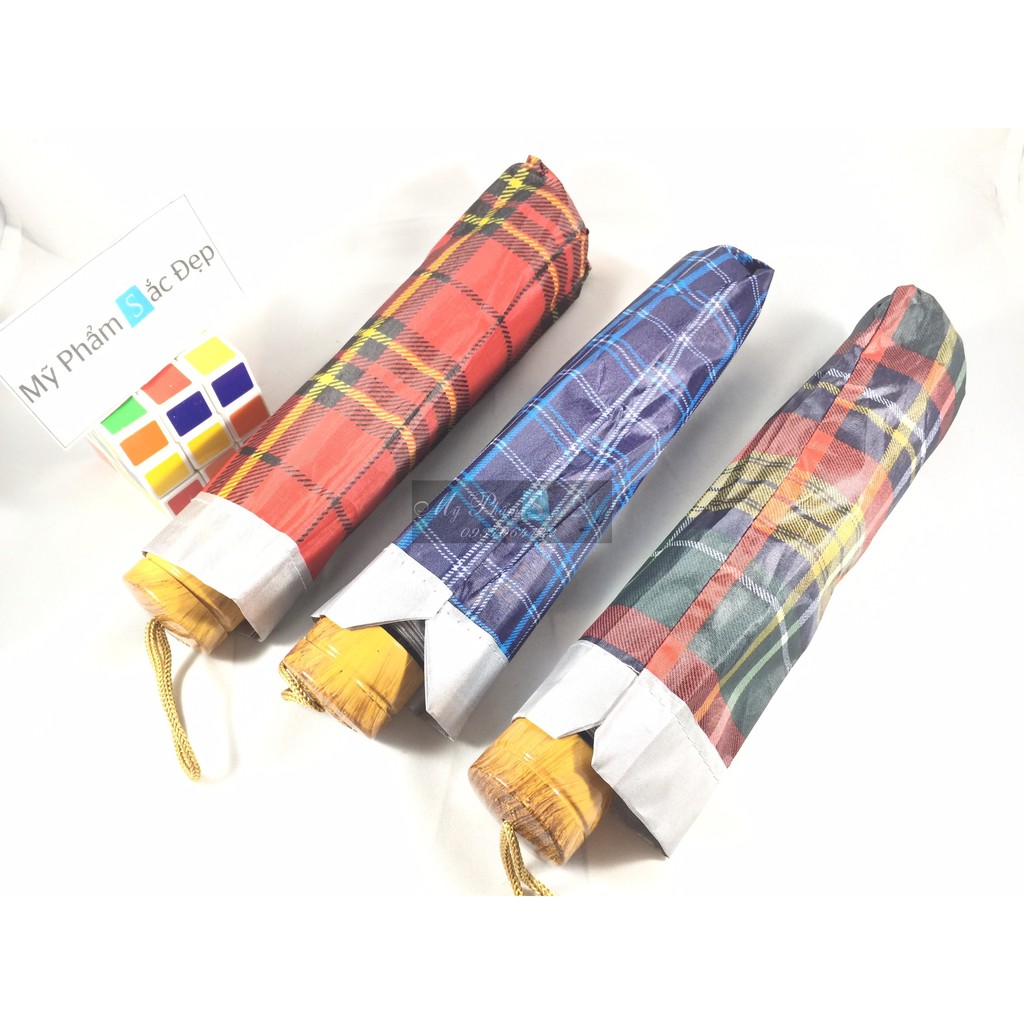 Ô dù gấp caro nhiều màu tráng bạc chống tia UV 3 khúc