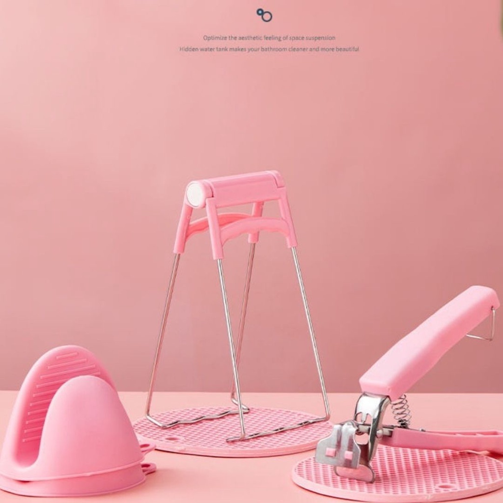 - Bộ dụng cụ được làm từ nhựa PP an toàn cho sức khỏe, phần thanh kim loại chống han gỉ và lót tay mỏ vịt silicon chống nóng