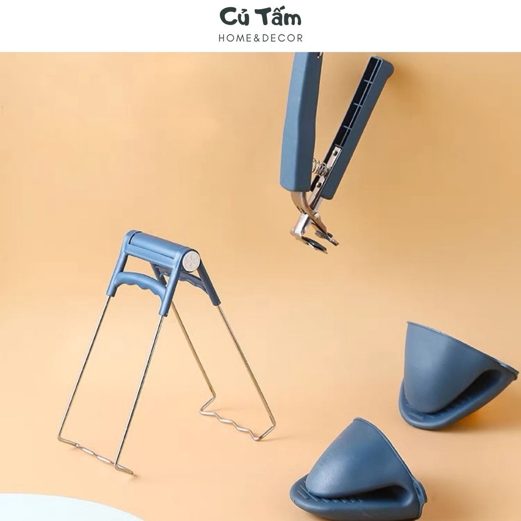 Bộ gắp đồ nóng, kẹp bát đĩa, găng tay bắc nồi mỏ vịt, bộ dụng cụ kẹp gắp đồ nóng 4 món lẻ an toàn