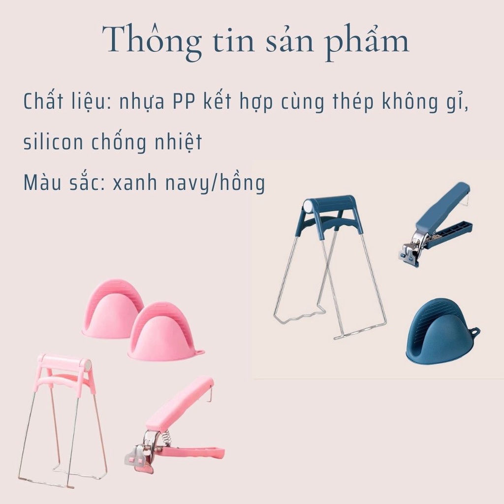 - Một bộ dụng gắp đồ nóng sẽ bao gồm 1 kẹp đồ, 1 thanh gắp đồ và 2 lót tay hình mỏ vịt