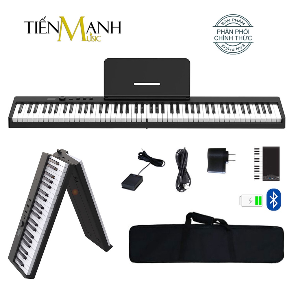 - Đàn có thêm Bao đựng, Giá để sách bản nhạc, Sustain Pedal đạp tạo tiếng vang, Cùng Cáp sạc, Bộ sạc.