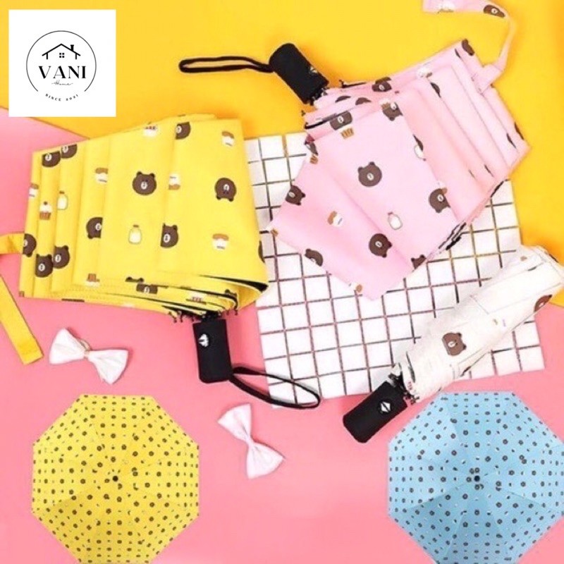 Ô Dù gấp gọn hình gấu Brown - Ô gấu Brown chống tia UV - Dù đi mưa che nắng xếp gọn nhiều màu