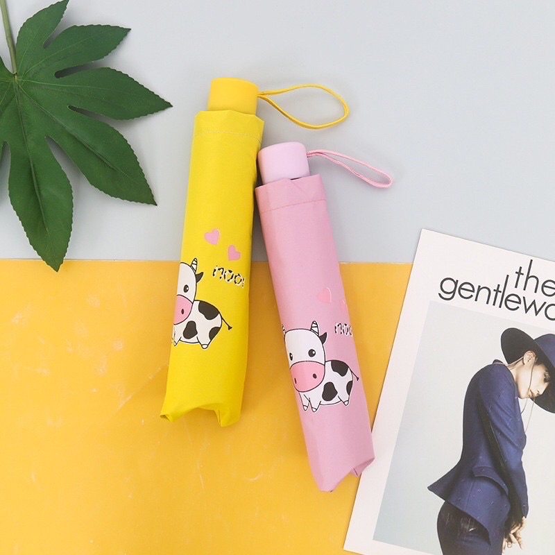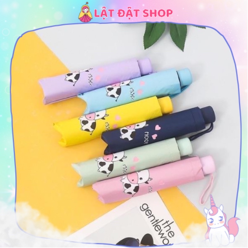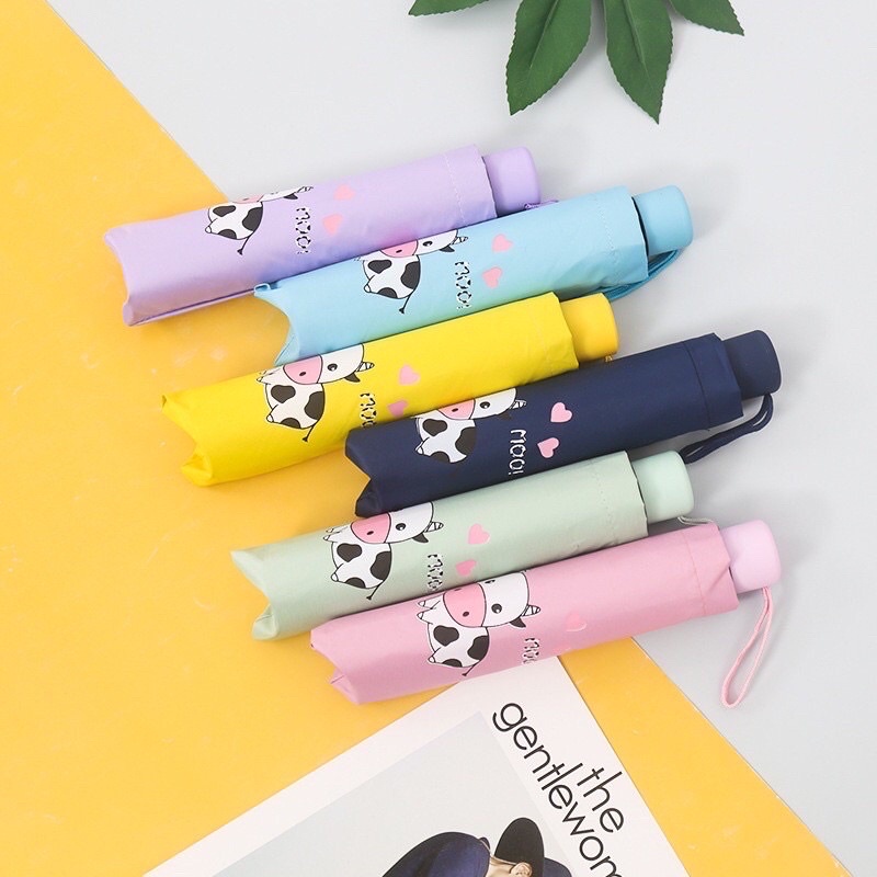 Ô dù gấp gọn hoạ tiết bò sữa - Dù che nắng hình bò sữa