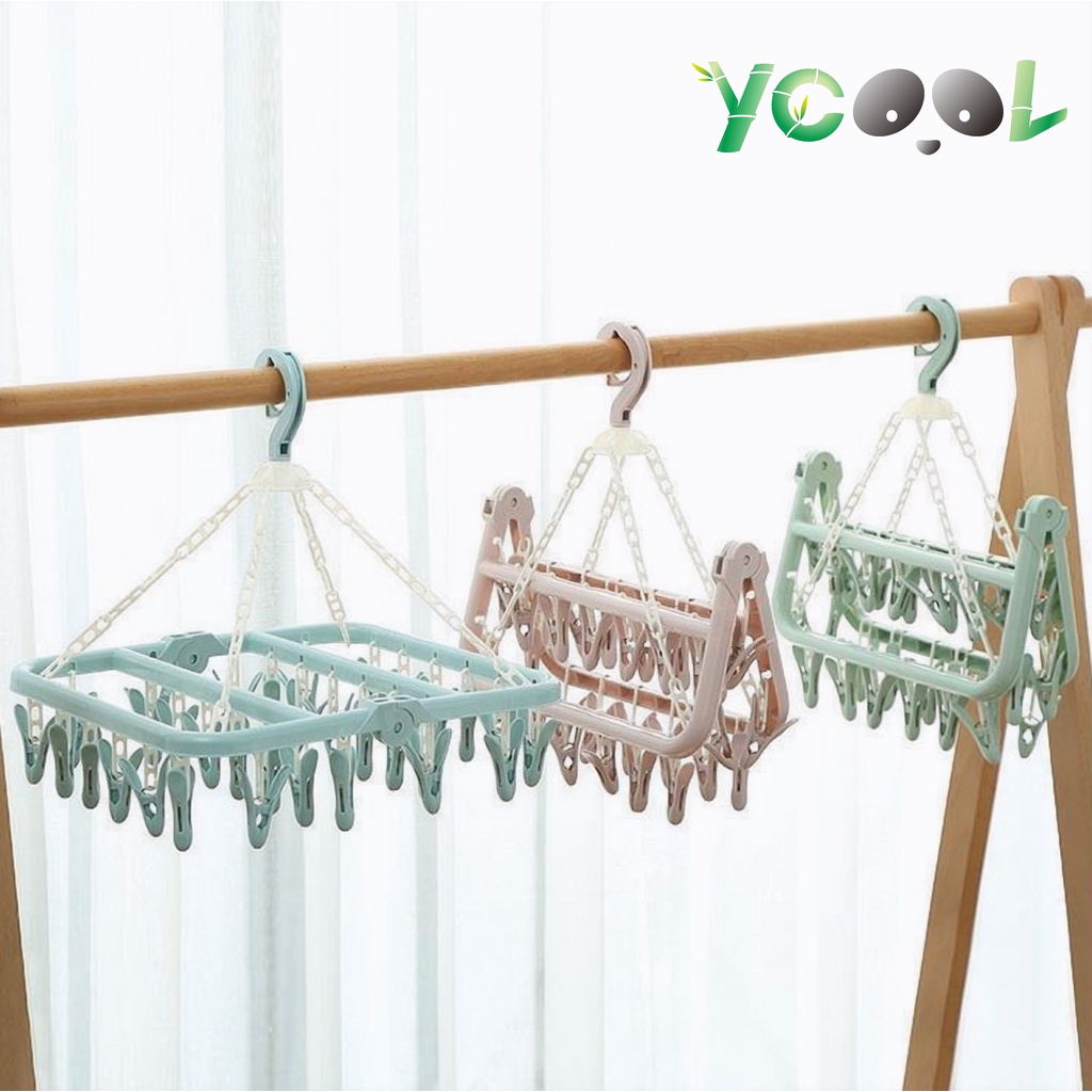 Giới thiệu ⚡Gập Gọn⚡Móc Chùm Phơi Quần Áo Đồ Baby Tã Đồ Nhỏ Quần Lót Nam Nữ 32 Kẹp
