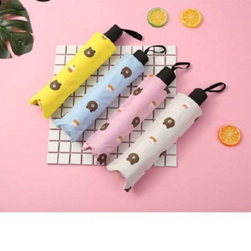 ❶ Ô DÙ ĐI MƯA GẤP GỌN HÌNH GẤU BROWN gấp gọn họa tiết gấu bắt mắt hình gấu brown có 3 màu cho bạn lựa chọn