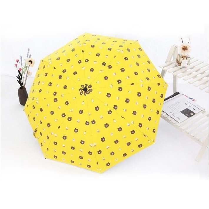 Ô Dù Gấp Gọn Tay Cầm Chắc Chắn Đi Nắng Đi Mưa Thoải Mái Họa Tiết Hình Gấu Brown Dễ Thương Đáng Yêu