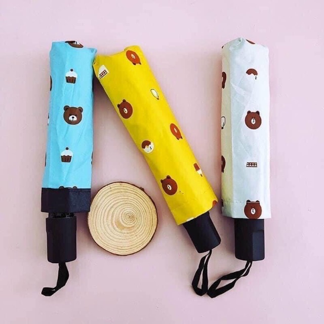 Thể Thao & Dã Ngoại > Phụ Kiện Thể Thao & Dã Ngoại > Ô/Dù || Ô dù gấp gọn tiện dụng. vành to che mưa chống nắng họa tiết hình gấu nâu brown siêu xinh. màu sắc trẻ trung năng độngCòn hàng